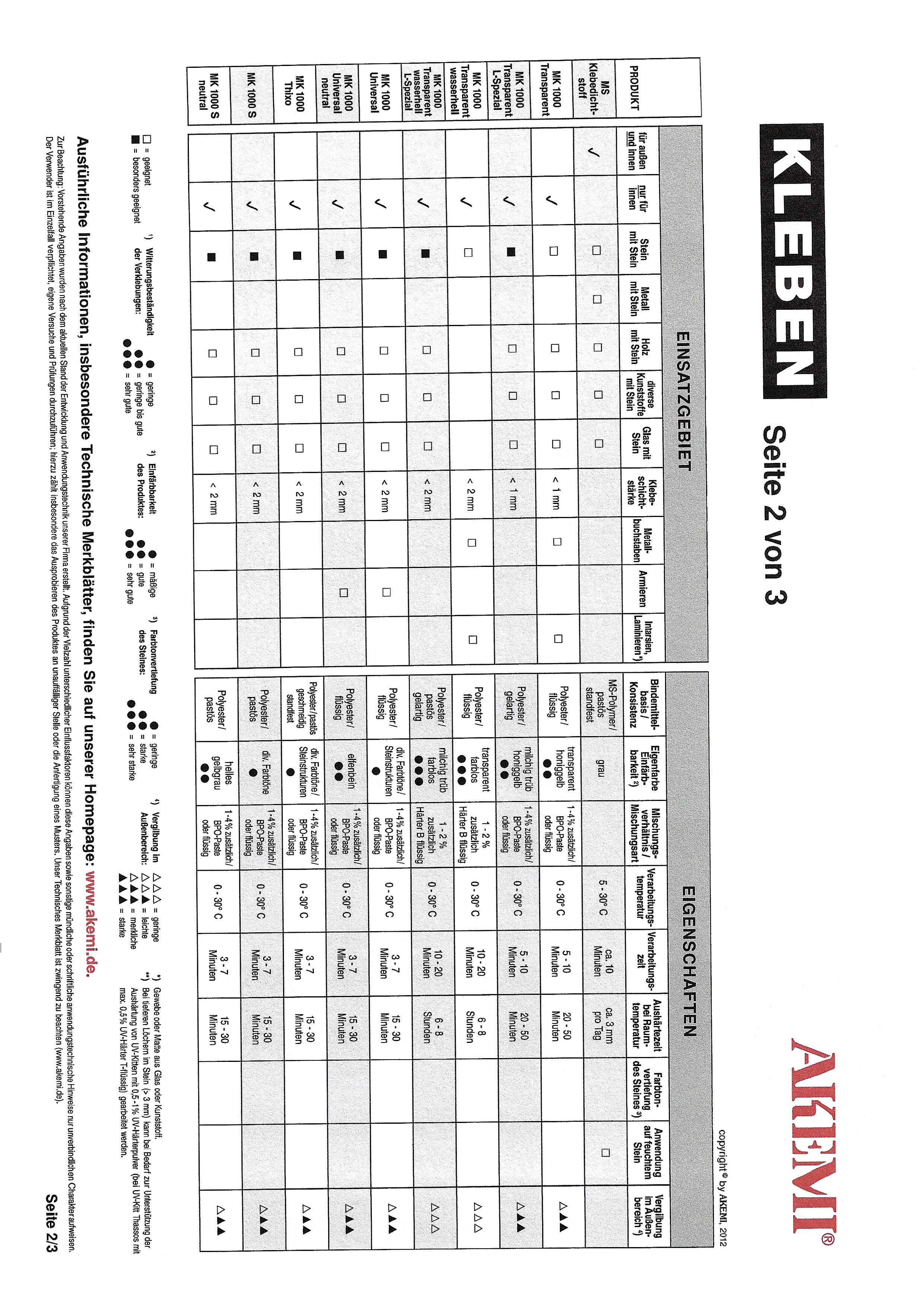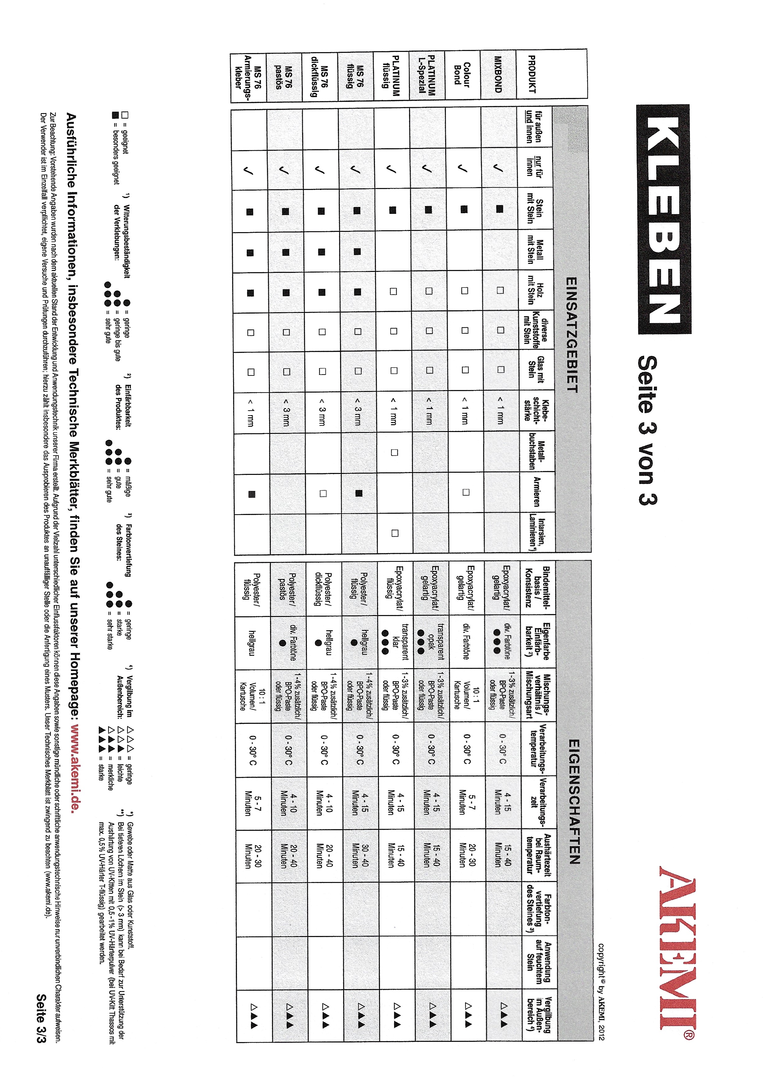 Zum Verkleben von Natur- und Kunststein untereinander und mit Holz und verschiedenen Kunststoffen. Besonders gute