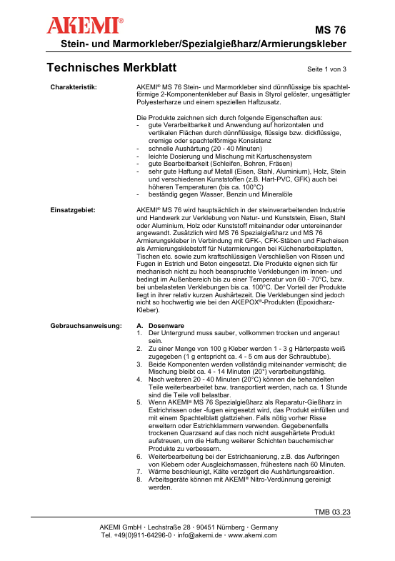 Produktinformationen "Akemi MS76 Dickflüssig 1,5kg 10903"