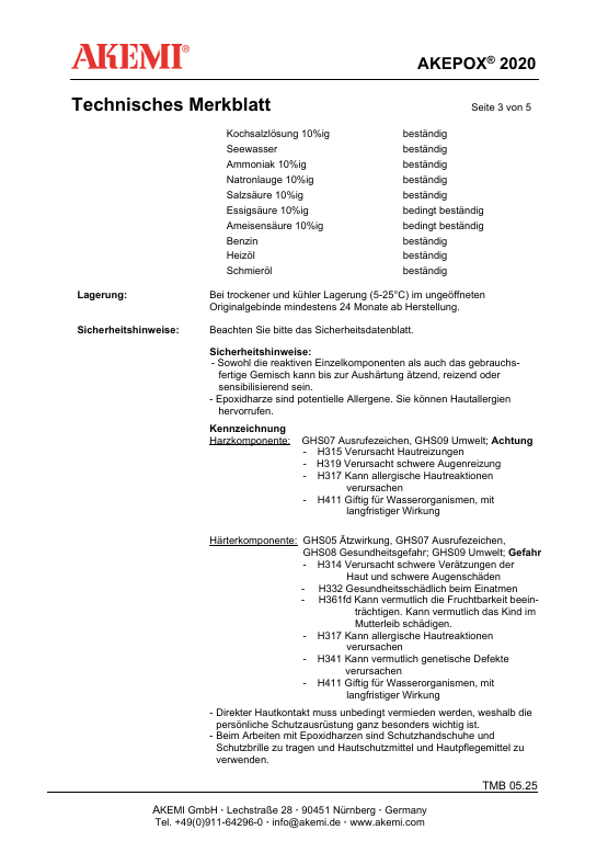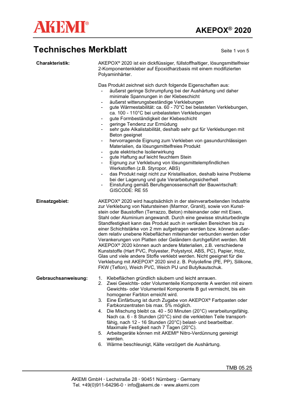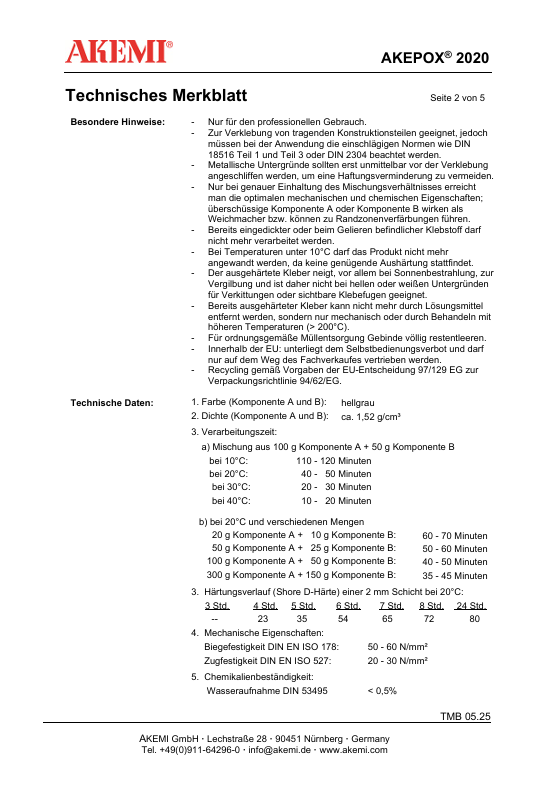Produktinformationen "Akemi AKEPOX 2020 2K-Konstruktionskleber 3kg 10620"