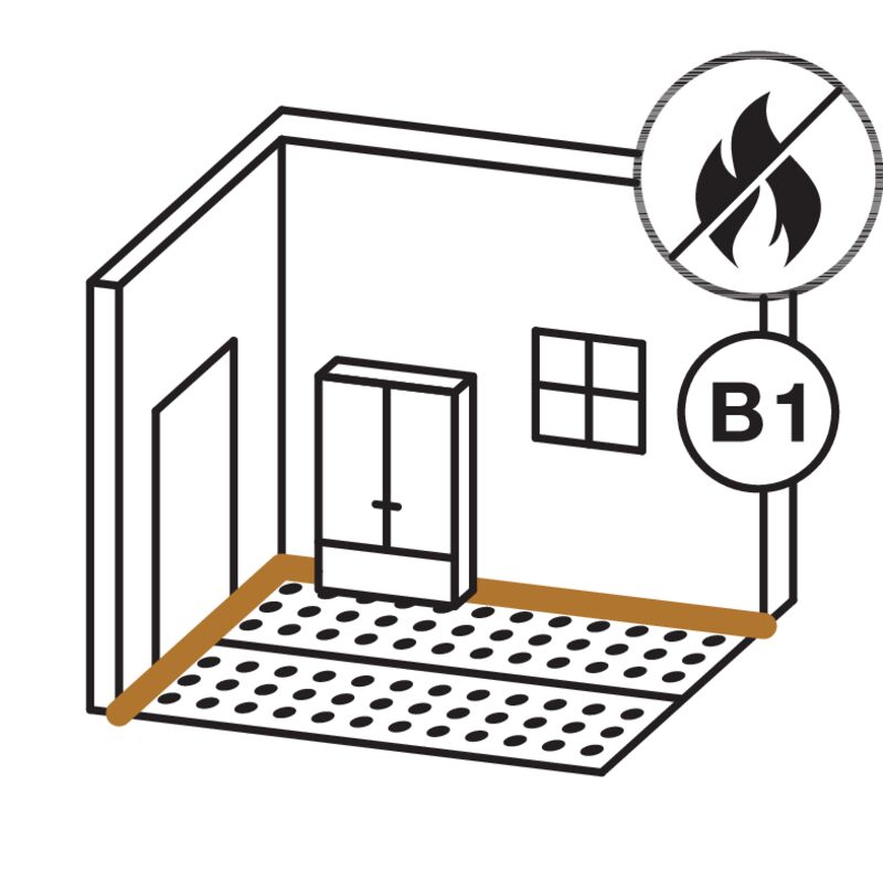 - Schwer entflammbar - Baustoffklasse B1 nach DIN 4102 und nach DIN EN ISO 4589