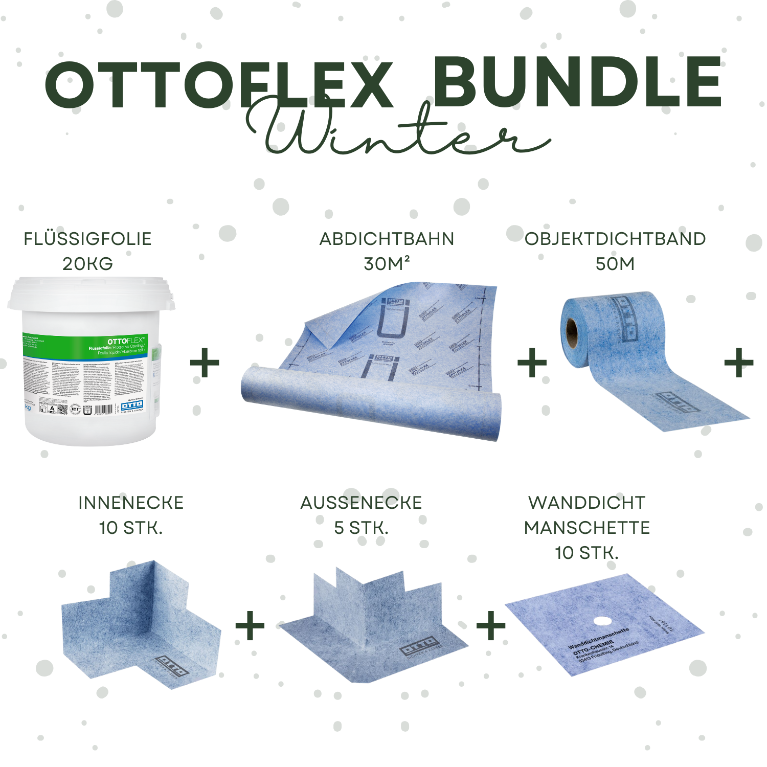 Produktinformationen "Ottoflex Winter Bundle Flüssigfolie Abdichtbahn Objektdichtband Innenecke Außenecke Wanddichtmanschette"