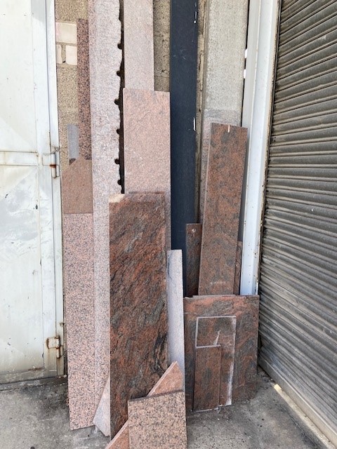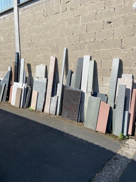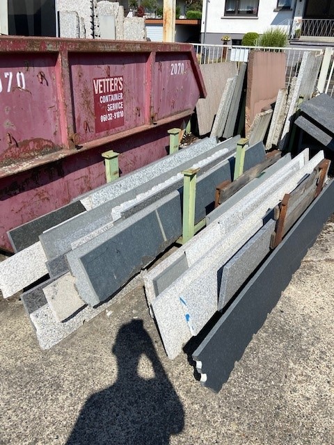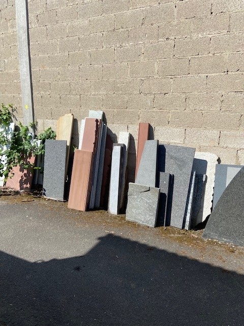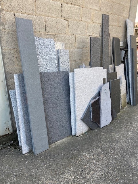 Verschiedene Restplatten aus Granit oder Marmor in verschiedenen Größen und Stärken.